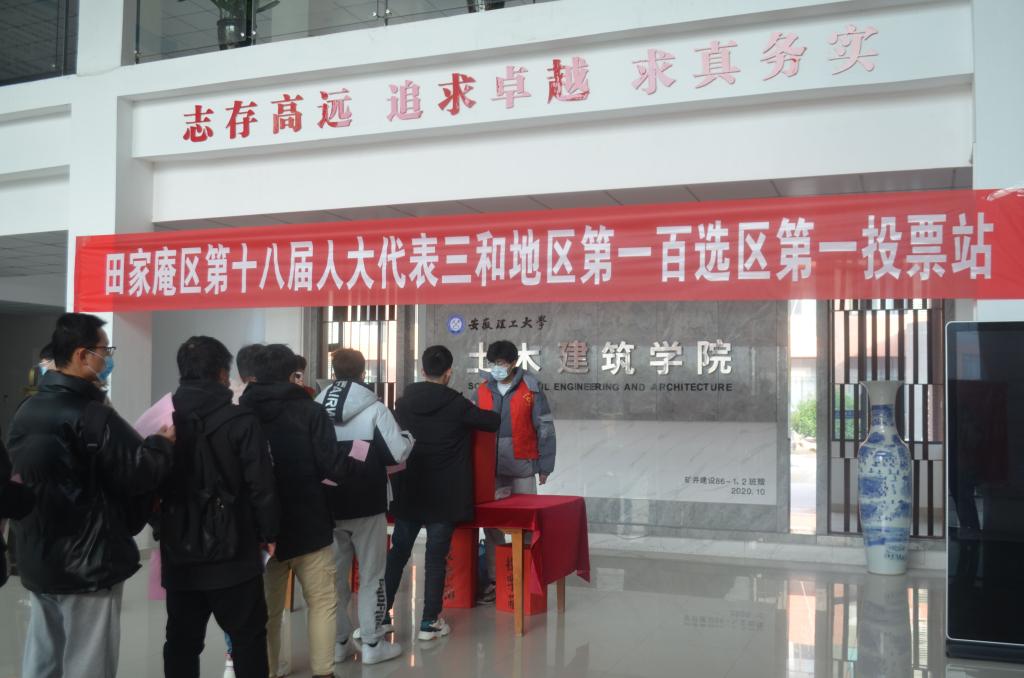 12月10日上午,热博rb88唯一官方网站组织开展田家庵区第十八届人大代表选举工作。田家庵区第十八届人大代表三和地区第一百选区第一投票站设置在求是楼一楼大厅。全院3700余名选民现场有序投票。